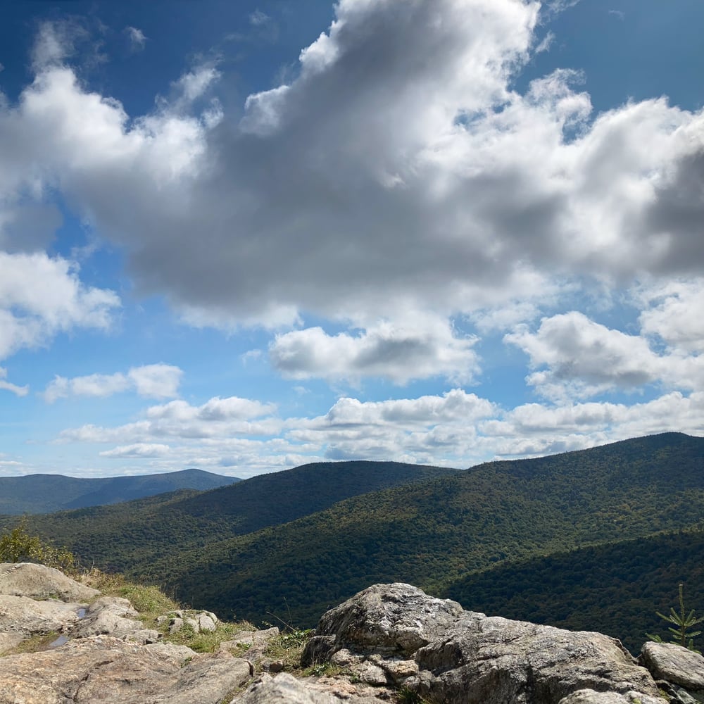 Sure enough, it’s Karl and his owner Ryan, who gave me my trail name several days back! I haven’t seen him since he passed me on top of Killington. It’s great to see a friendly face up here after some difficult solo miles. We catch up quickly. He has his tent set up in the clearing near the lifts and invites me to stay and camp with him. It’s tempting for the great views and the company, but I’ve already texted Tom and asked him to pick me up at the road. As I start the descent, Ryan is taking a photo for a group of local women out on a day hike, hamming it up in his charming, energetic way. The scene puts a smile on my face.