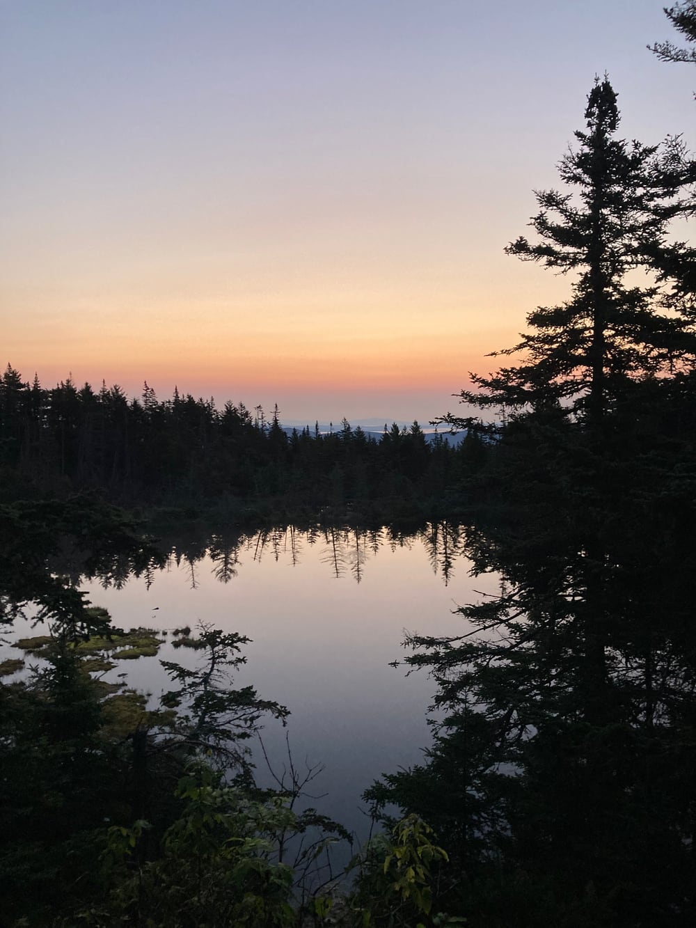The weather is amazing again today but the morning hiking is tough. Lots of what hikers call “PUDs”—pointless up-and-downs1. The trail is crappy, with lots of mud pits, and fallen trees so big I have to take my pack off and throw it over before maneuvering my way underneath. I think the philosophy in the wilderness areas is to let them be wild and maintain the trails a bit less. I did spy fresh moose scat—there’s hope for a moose sighting yet!